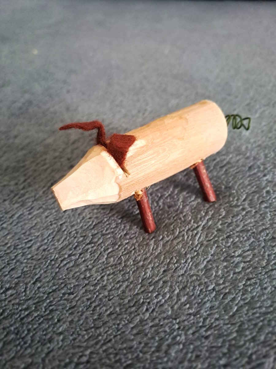 Děti si nožíkem upraví složí dřevěné prasátko, které si pak mohou obarvit fixami dle svého vkusu a nálady.
